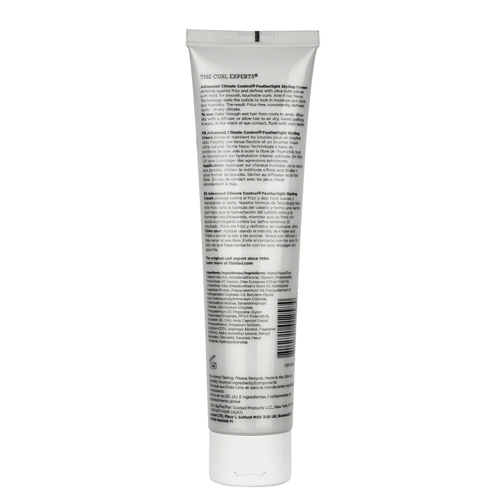 Humidity is every curl’s nightmare. Ouidad Advanced Climate Control Featherlight Styling Cream defines curls and defends against frizz with ultra-light and pillow-soft hold. A special blend of lightweight humectants and oils nourishes hair, while flexible styling polymers weightlessly define curls. Anti-Frizz Nano Technology locks in moisture while locking out humidity. The result: Frizz-free, consistently defined curls which last – in any climate.